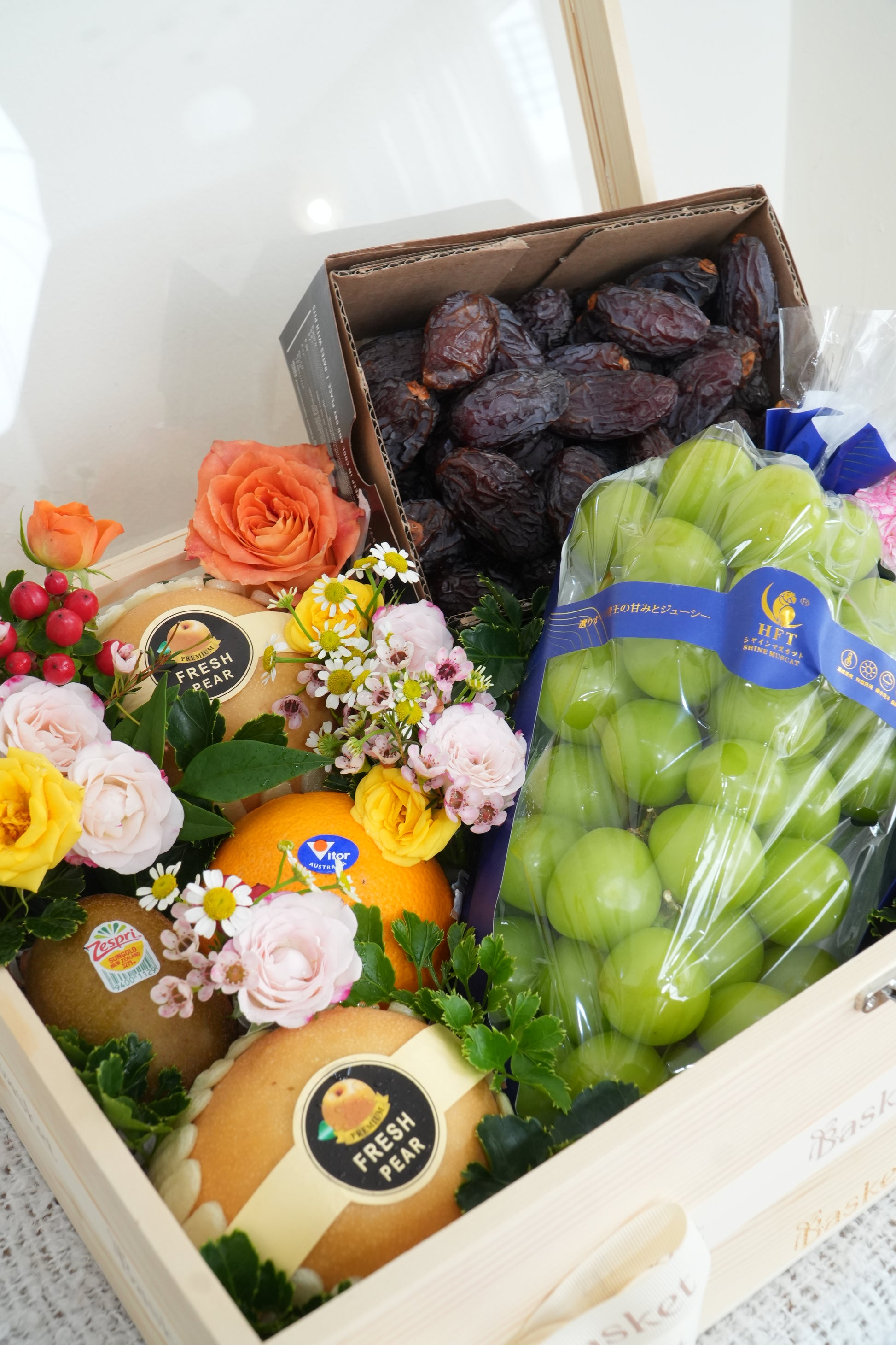 Product List : Medijool Dates, Shine Muscat Grapes, Pears, Oranges, Hass Avocado